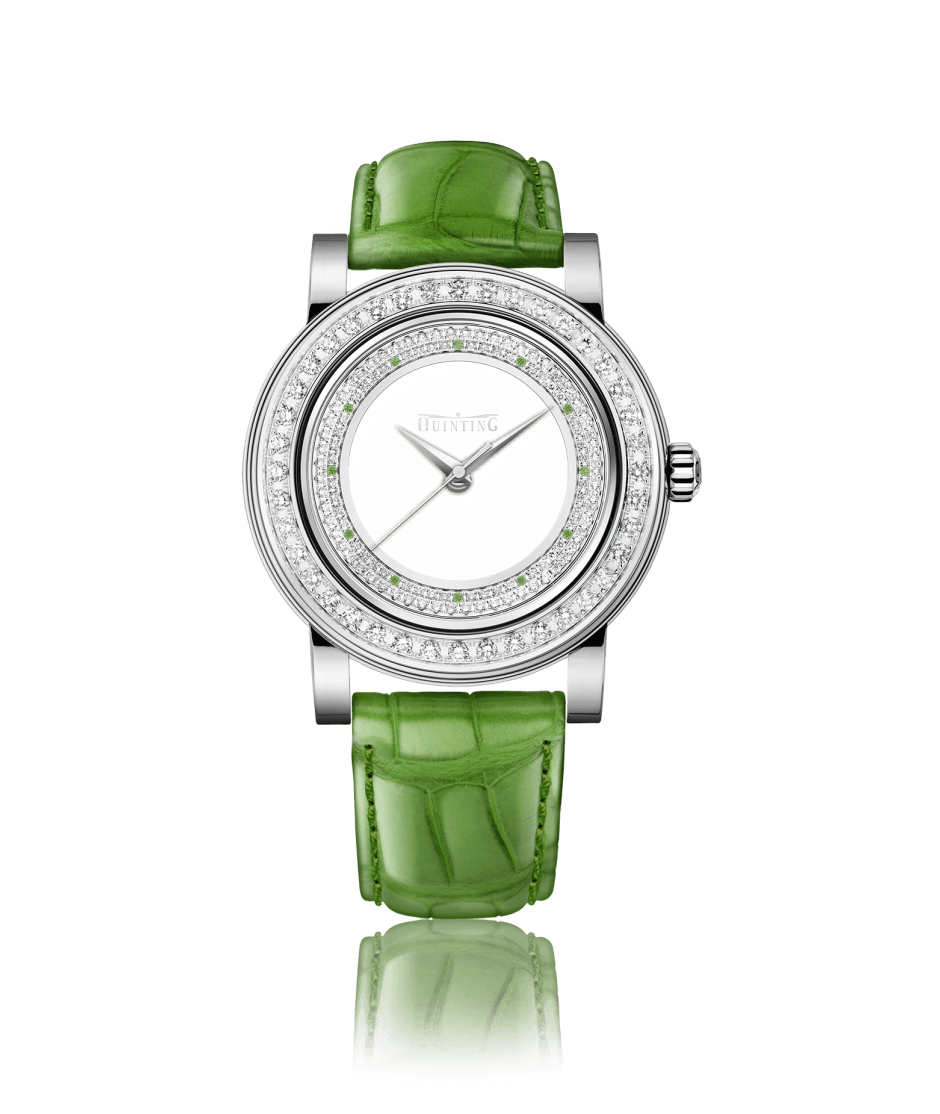 The movement is composed of 9 perfectly parallel transparent sapphire discs. 4 (hours, minutes, seconds, and false seconds moving in the anticlockwise direction) of which are mobile. No other watch in the world uses a sapphire movement apart from Quinting. No other one is transparent.